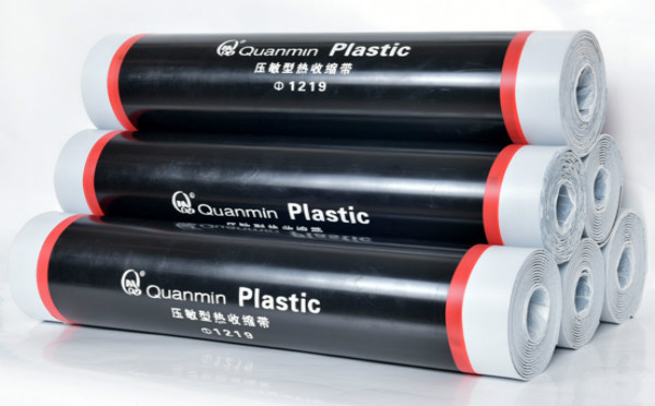 壓敏膠型熱收縮帶是有改性輻射交聯(lián)聚乙烯基材+丁基橡膠改性壓敏膠+離型膜組成。