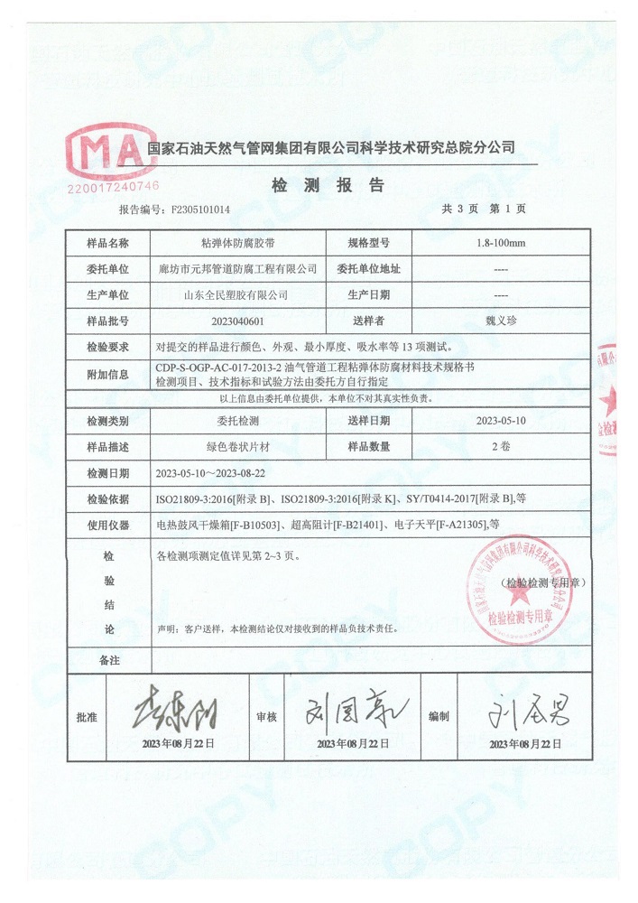 • 粘彈體防腐膏檢測報告5